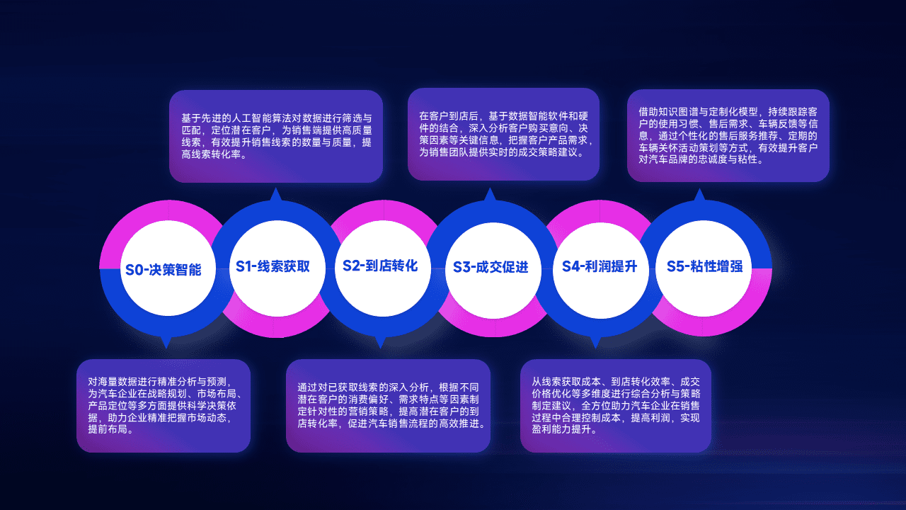 通过拓宽潜在客户来源、、优化线索分配并提高到店转化率,,以增强销售效率。。。。同时,,,,利用线索数据不断优化分析模型,,,,有效提升转化率,,,扩大营销影响力。。。